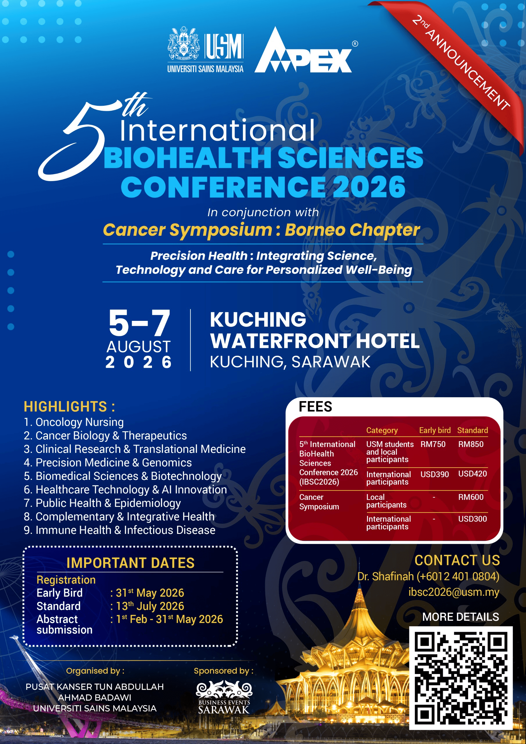 A special highlight of the 5th AMDI IBSC2026 is the concurrent Cancer Symposium: Borneo Chapter, which aims to underscore clinical perspectives and the sustainability of healthcare systems in shaping the future of cancer care.