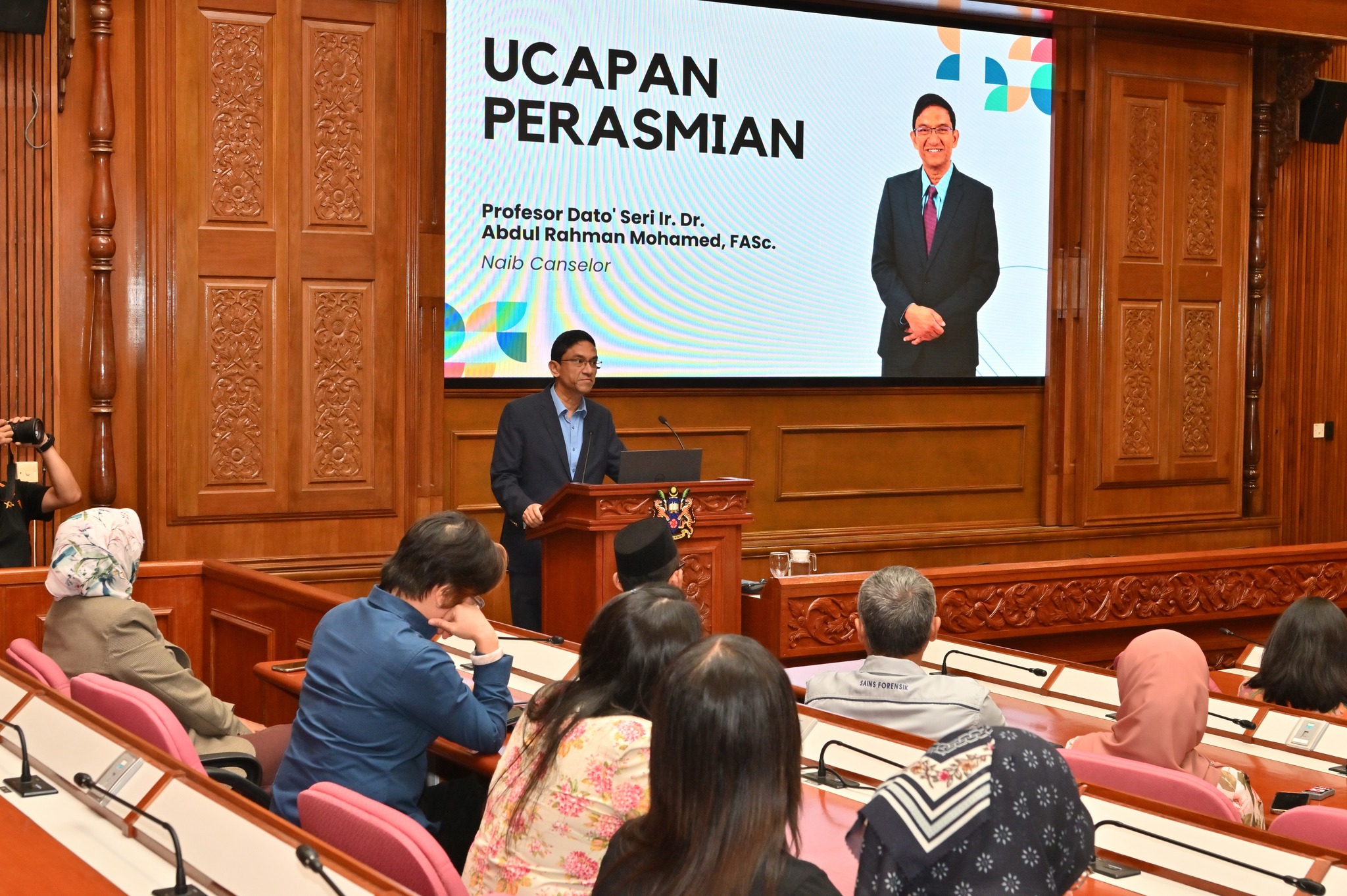 Majlis Academia Fiesta@USM 2024 yang berlangsung di Dewan Persidangan Universiti (DPU), USM ini disempurnakan oleh Naib Canselor USM, Profesor Dato’ Seri Ir. Dr. Abdul Rahman Mohamed yang memberikan penekanan berkaitan kepentingan menggalakkan inovasi dan kreativiti serta tumpuan kepada reka bentuk dan pengembangan bahan PdP yang relevan dengan keperluan semasa.