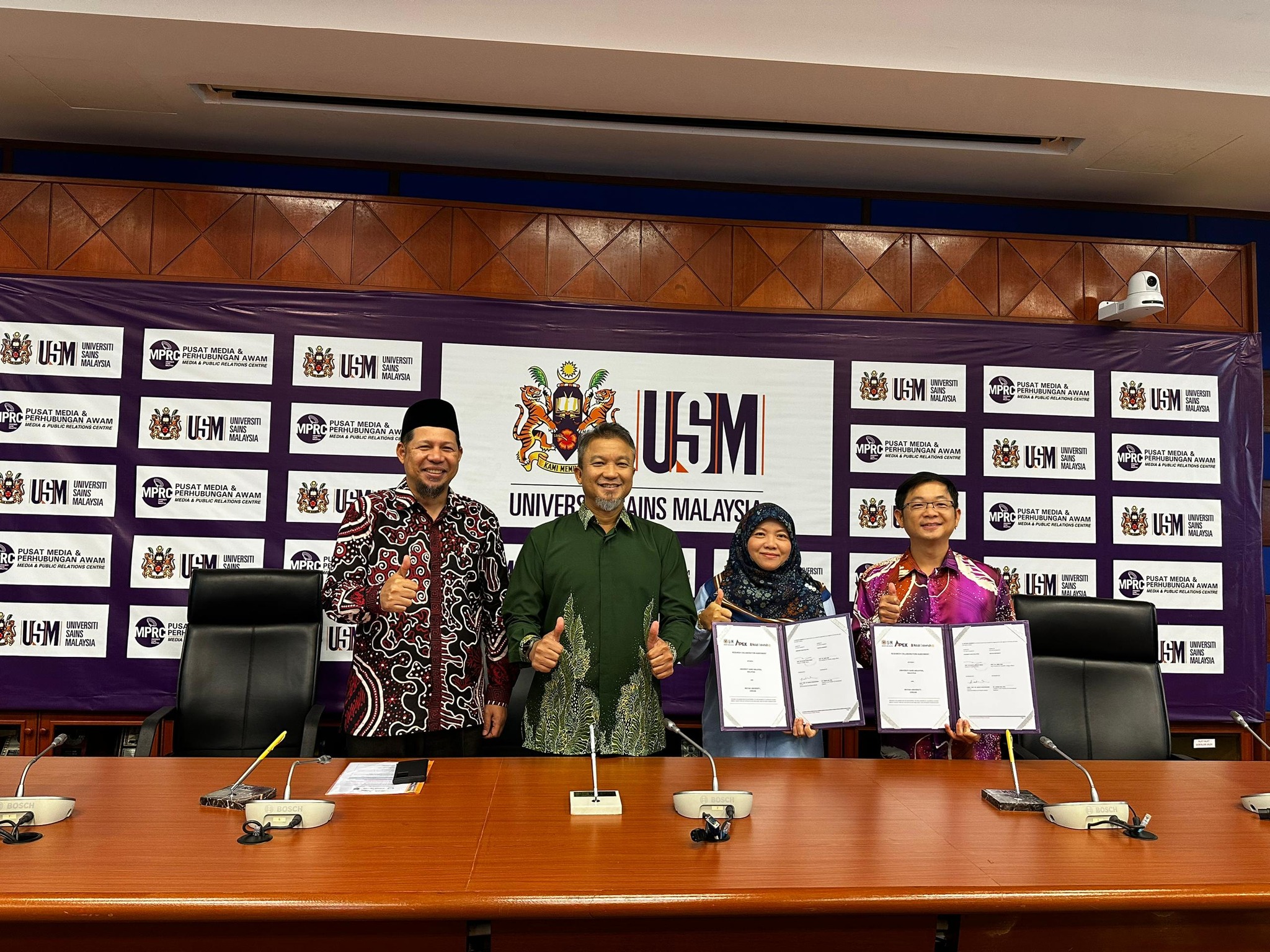 "Saya berharap agar kolaborasi antara USM dan ketiga-tiga universiti ini menjadi pemangkin kepada lebih ramai penyelidik antara kedua-dua negara untuk menjalinkan kerjasama dalam bidang lain pada masa akan datang.