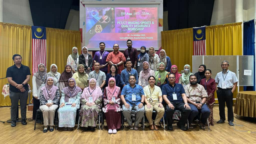 KEPALA BATAS, 13 & 14 Oktober 2025 – Nuclear Medicine Insight 2025 : PET/CT Imaging Update & Quality Assurance Workshop anjuran Unit Perubatan Nuklear, Pusat Perubatan USM Bertam (PPUSMB) dan Jabatan Pengimejan Bioperubatan, Institut Perubatan dan Pergigian Termaju (IPPT) telah berlangsung di Auditorium Sains@Bertam, IPPT dan Unit Perubatan Nuklear dengan kehadiran hampir 50 peserta merangkumi pakar perubatan, pegawai sains fizik, juruteknologi perubatan nuklear, juru x-ray, jururawat perubatan nuklear dan pelajar pascasiswazah dari seluruh negara.