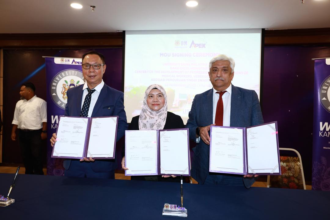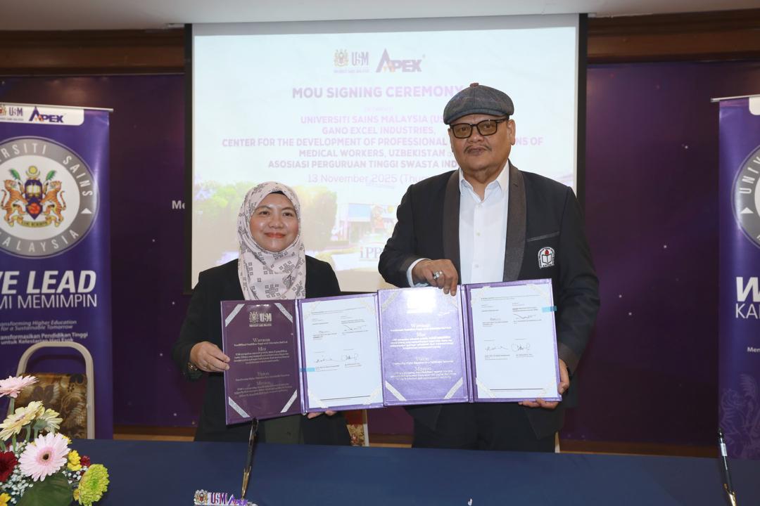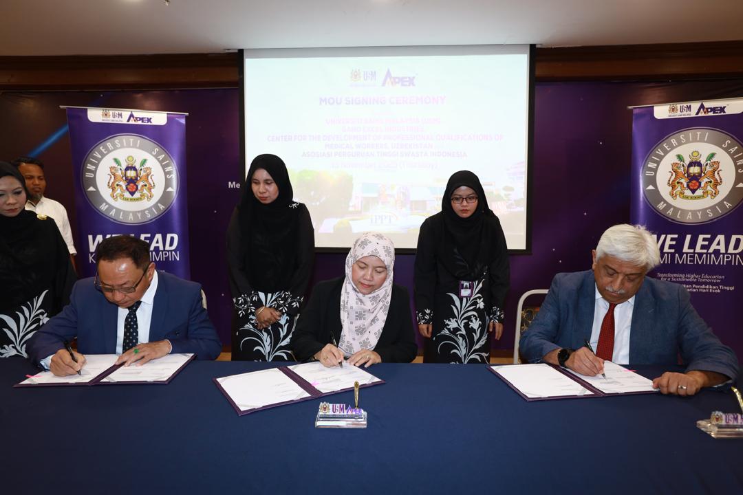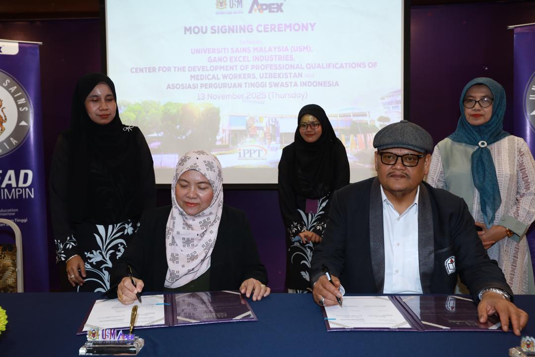 USM, PULAU PINANG, 13 November 2025 — Institut Perubatan dan Pergigian Termaju (IPPT), Universiti Sains Malaysia (USM), sekali lagi melakar pencapaian antarabangsa apabila memeterai tiga Memorandum Persefahaman (MoU) strategik bersama rakan global dari Uzbekistan, Indonesia dan Gano Excel Industries. Majlis bersejarah itu berlangsung di Dewan Jamuan (Banquet Hall), Bangunan Canselori II, Kampus Induk USM.